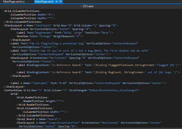- <Label Text="BugSweeper" Font="Bold, Large" TextColor="Navy"/>