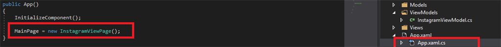 After design view creation, go to Solution Explorer >> Instagram(PCL) >> click open App.xaml.cs file and declare that the Main page is InstagramViewPage. The code is given below.
