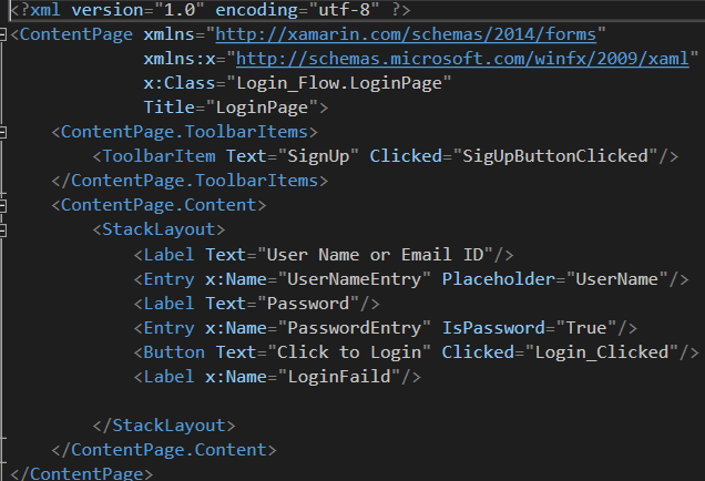 - <ToolbarItem Text="SignUp" Clicked="SigUpButtonClicked"/>