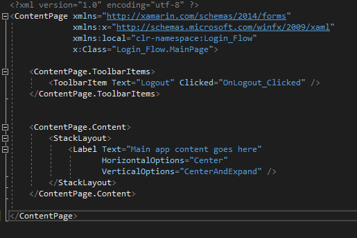 - <ToolbarItem Text="Logout" Clicked="OnLogout_Clicked" />
