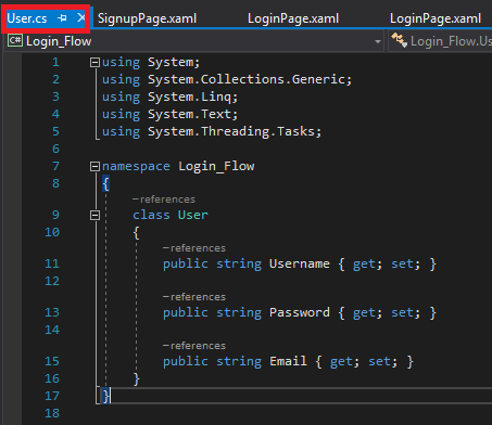Afterwards, create a class named User.cs. For that, go to Solution Explorer>>Login_Flow(PCL)>>right click and select a new class.