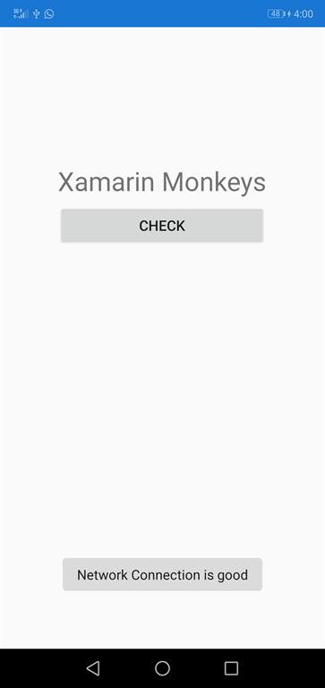 - DependencyService.Get<IToast>().ShowToast("Network Connection is good");