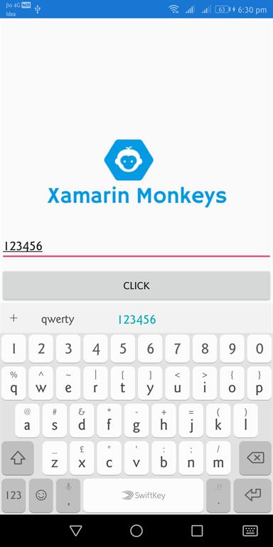 - <Entry x:Name="txtNumber" Placeholder="Enter 6 Digit"></Entry>