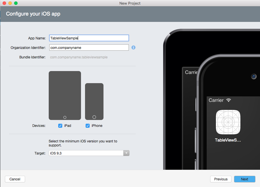 - Now, we will name the app and select the minimum iOS version that our app will support, as shown: