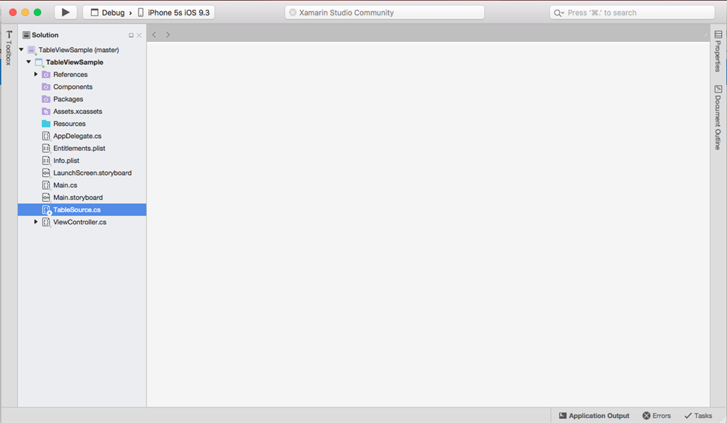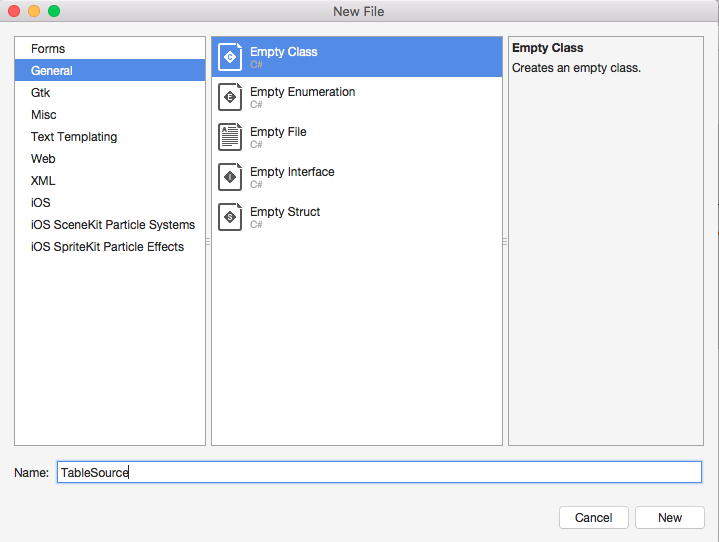 - Once the file is added, open TableSource.cs and add the code, given below: