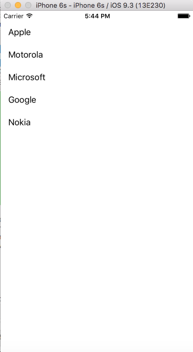 - string[] tableItems = new string[] { "Apple", "Motorola", "Microsoft", "Google", "Nokia" };