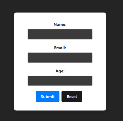 name, email, age: regular input fields (all string)