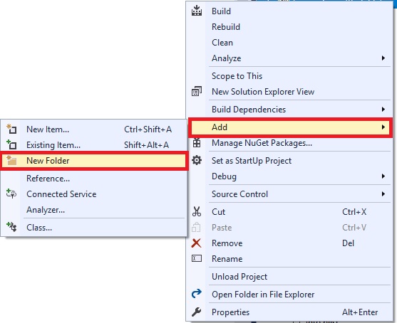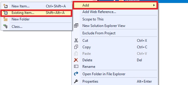 Next, go to Open Solution Explorer >> Project Name >> Right-Click >> Add >> Class.