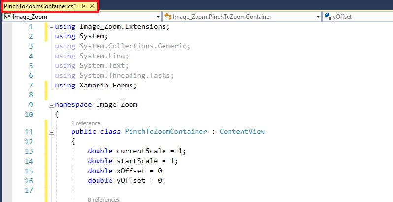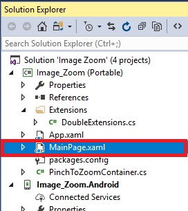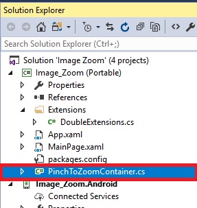 Open Solution Explorer >> Project Name(Portable) >> PinchToZoomContainer.cs. Double click for opening this page.