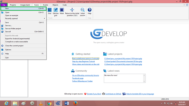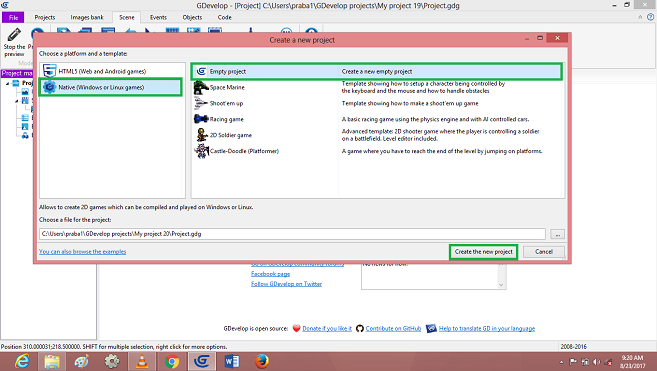 “Gdevelop” Software Environment version 4.0 (Free).