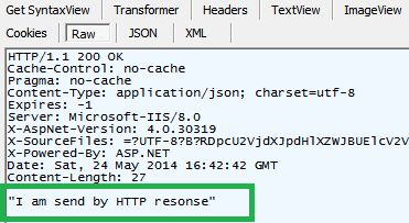 Please look that, the response string is coming as a body of HTTP response.  	Not only string, we can send any complex type of custom data type as a body  	of the HTTP response message. In the next example we will try to send a list  	of strings in the body of the response message with an Ok status. Here is  	our modified code.
