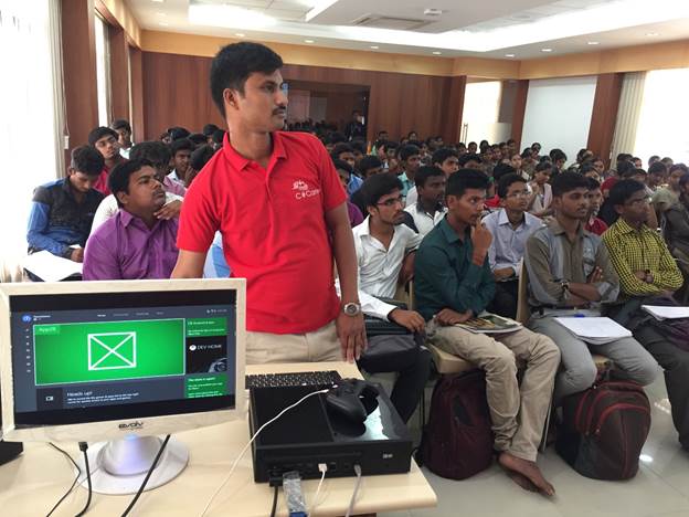 Later, Mr. Kuppurasu Nagaraj – an active member of our C# Corner Coimbatore Chapter team, Microsoft Most Valuable Professional, C# Corner’s Most Valuable Professional, trainer, and expert of Azure platform, headed the session on UWP with Xbox. He was discussing UWP which leads to the path of game development using Xbox, game development tools, features of game development, and hands on and demos of game development, in which he developed a game for the audience.