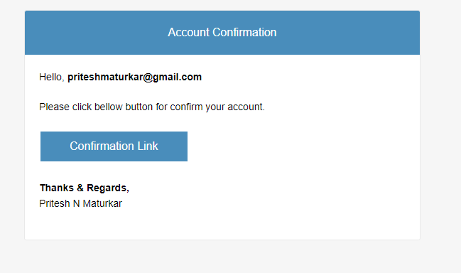 After registration, send account confirmation via email. For confirmation, you need to click on the link. When we click on the link, it calls the account confirm method and updates the email confirmation field in the database.