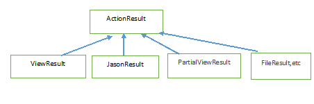 ActionResult is a base class of all the inbuilt Result classes. All the mentioned classes are inherited from ActionResult. Thus, we are using the concept of Runtime Polymorphism, where a base class object can point to its child class. Thus, if we are mentioning ActionResult as a return type of any action/function and it returns any child class (viewresult,jsonresult ), it will automatically type cast to the parent class type, i.e., “ActionResult”.