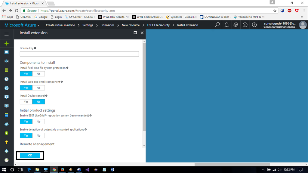 From the following install extension dialog box it requires the license key for activation of ESET along with VM, but you can activate it later, just click –>OK button.