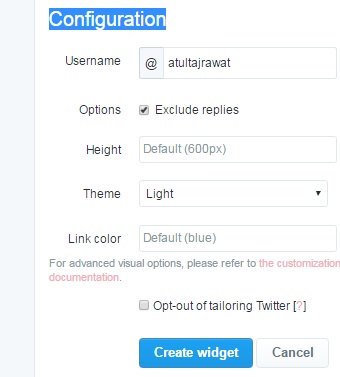 You configuration contains your Twitter handle, height theme, and link color shown in the below snap.