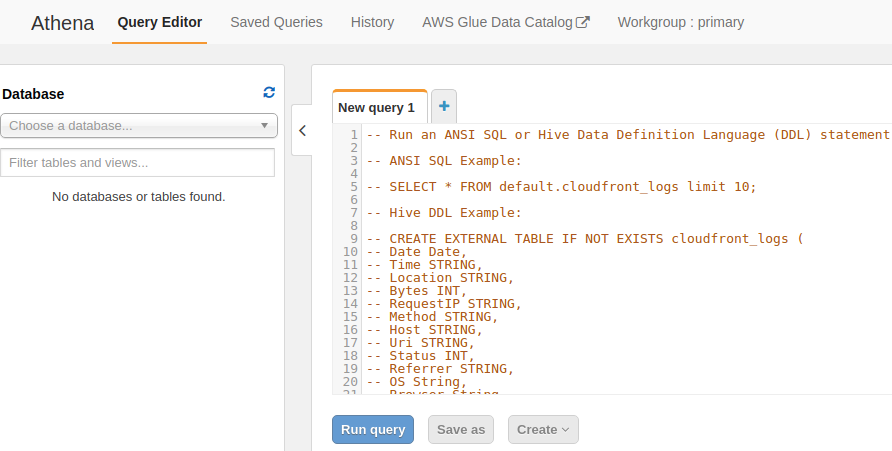 Amazon web services (AWS) itself provides ready to use queries in Athena console, which makes it much easier for beginners to get hands-on.