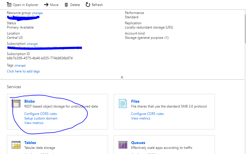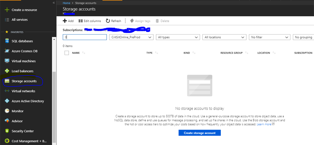 In the left menu, click on Storage. It will take you to the Microsoft Storage account.
