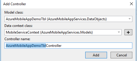 - public class AzureMobileAppDemoTblController : TableController<AzureMobileAppDemoTbl>