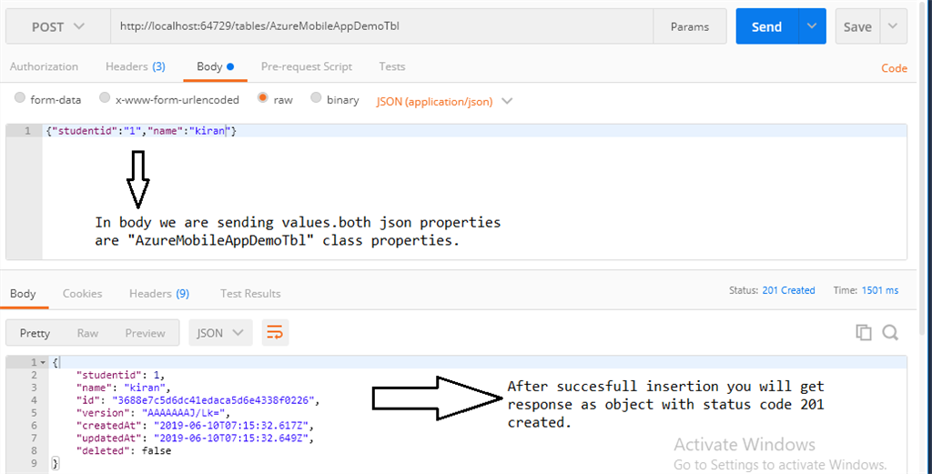 Please check the bellow figure. We are calling API and the method is POST. In the body, we are posting data that needs to insert to a particular table.