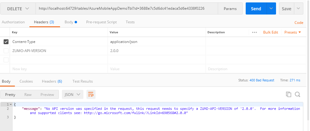 URL:-Http://localhost:64729/tables/AzureMobileAppDemoTbl?id=3688e7c5d6dc41edaca5d6e4338f0226
