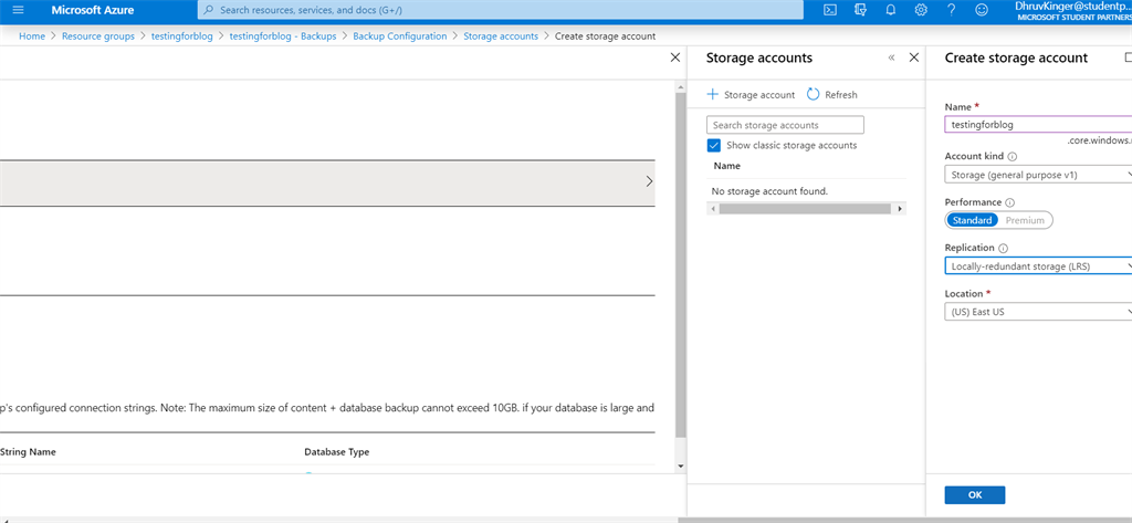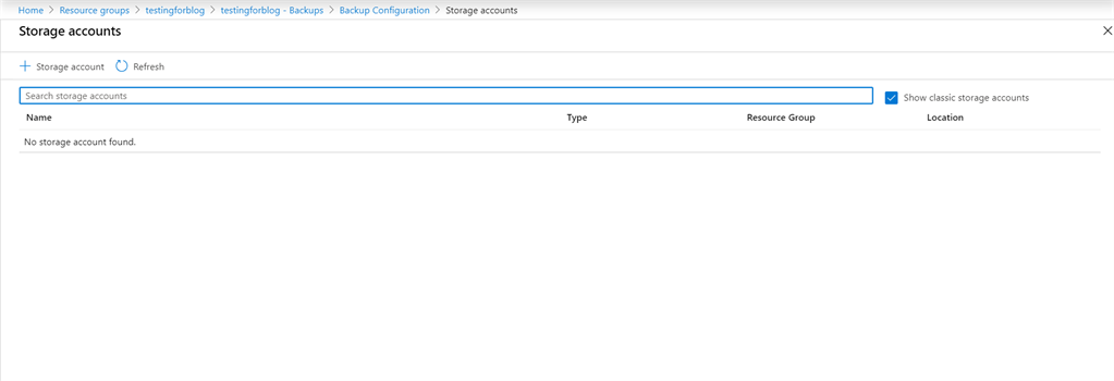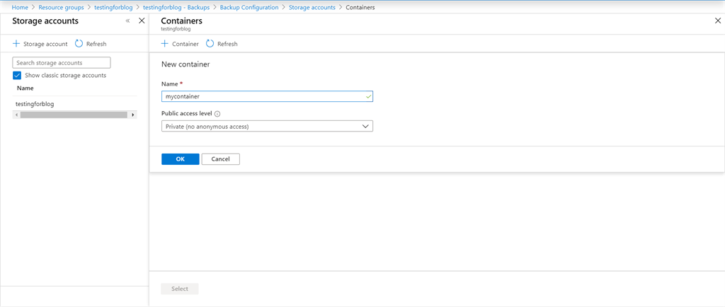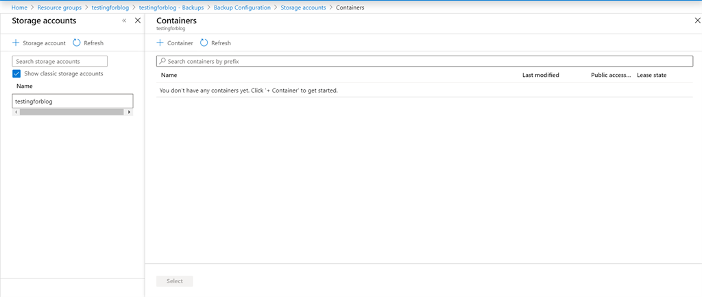 - Now you need to create a storage account and container for your backup.