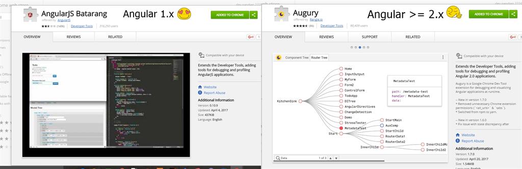 Angular Batarang / Augury is a superheroic tool for debugging Angular applications. It saves a lot of time with setting breakpoints, viewing model values, and forming status in the console.