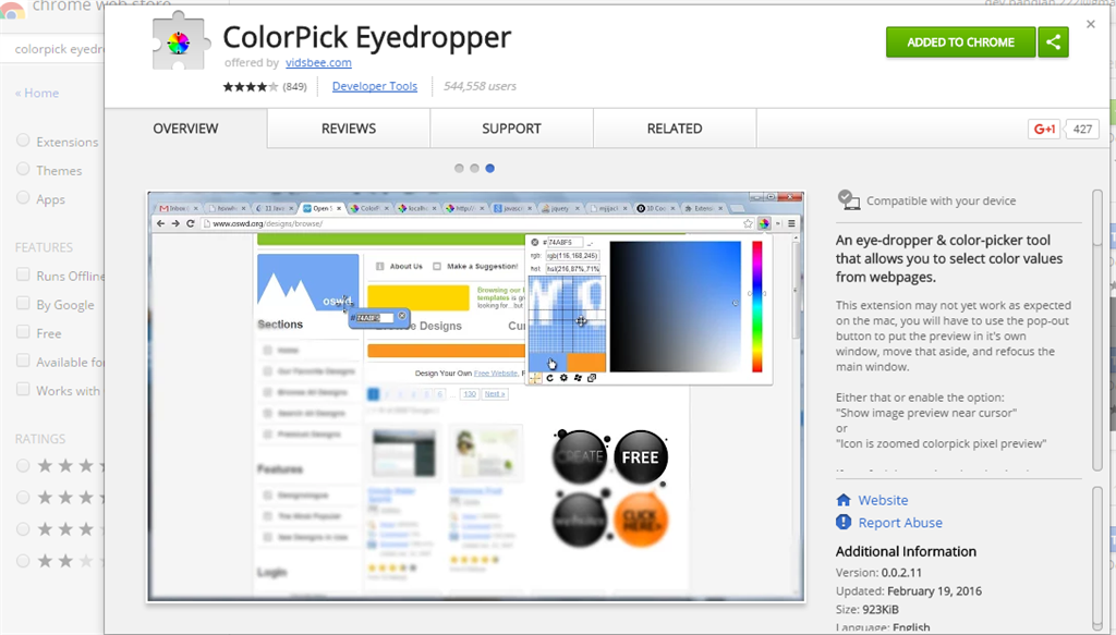 An eye-dropper & color-picker tool that allows you to select color values from web pages. Get any color from the web page.