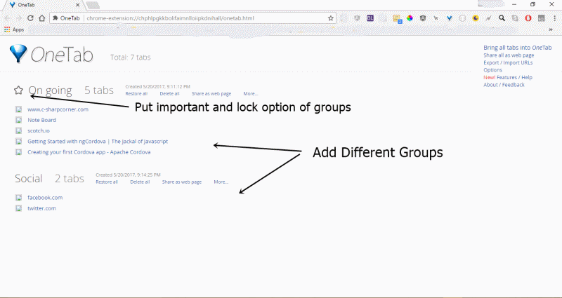 It’s not a debugging or auditing tool. It's just a single HTML page into which you can save your opened temporary tabs and then visit it any time. Whenever you find yourself with too many tabs, click the OneTab icon to convert all of your tabs into a list. When you need to access the tabs again, you can either restore them individually or all at once.
