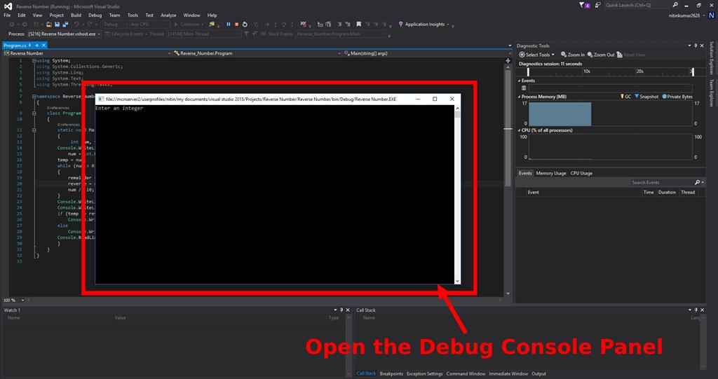 - Console.WriteLine("Its reverse is = {0}", reverse);