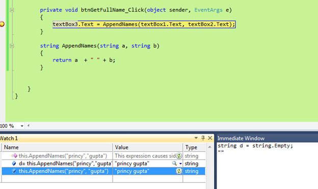 We all use watch windows for debugging the code. Mostly it is used to watch the values of the object or to change the value and observe the result. However we can even use watch window to evaluate results for the methods. I would be sharing how one can call the methods from watch windows.