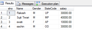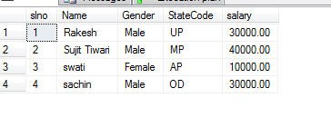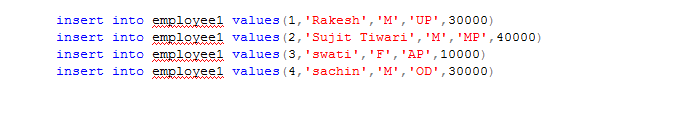 Here i am Creating a table as 'Employee1' which contain following colums.