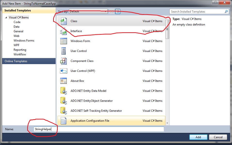 Step 3 - Create a Class in the name of StringHelperProject -> Add Class