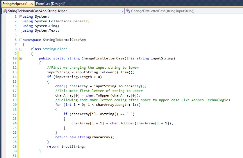 In this article I am discussing about a way to change the first letter of a string to upper case. For example the string “mohammed ashraf” will change to “Mohammed Ashraf”. And also the string “MOHAMMED ASHRAF” will change “Mohammed Ashraf”.