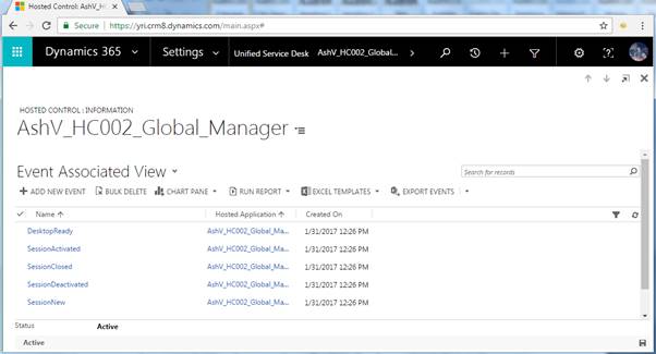Action should be selected as SetTheme. Data should contain the path to your XAML theme, given BlueStyle.xaml theme is available by default. Now, you need to attach this action call to DesktopReady event of Global Manager. To do this, navigate to Hosted Control -> Your Global Manager. Here, click on arrow besides control name and then Events to see all the events, as shown below.