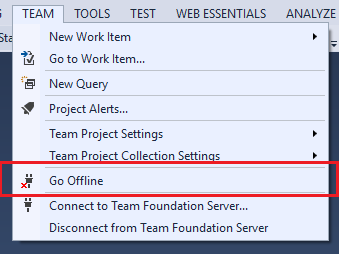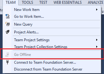 - Click on online option and search for TFS go offline.