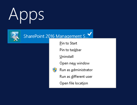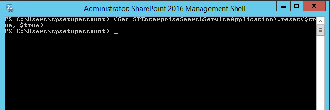 Clicking on the reset button will clear the indexed results from the search index location. We can also reset the search index, using PowerShell. Spin up SharePoint 2016 Management Shell.