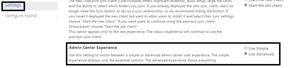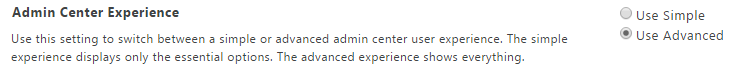 As an admin, you can choose what level of admin center experience you would like to have. I bet you will use advanced because it will show you all the features.