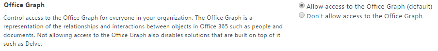 Office Graphs are required for the users in your organization to build representations between the documents and their work so it is always necessary to allow access to everyone but according to your organization's policy, you can do the choose option here.