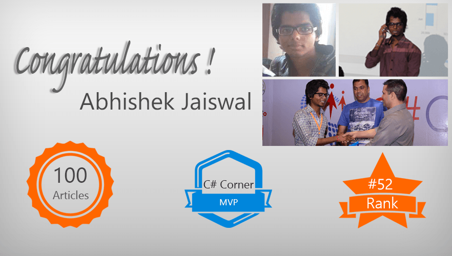 Congratulations Abhishek Jaiswal for Completing 100 Articles on C# Corner