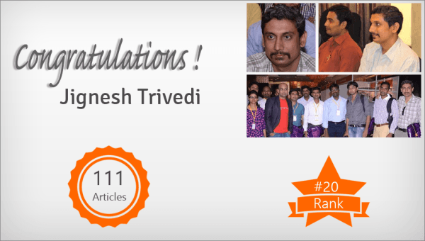 Congratulations Jignesh Trivedi for Completing 100+ Articles on C# Corner