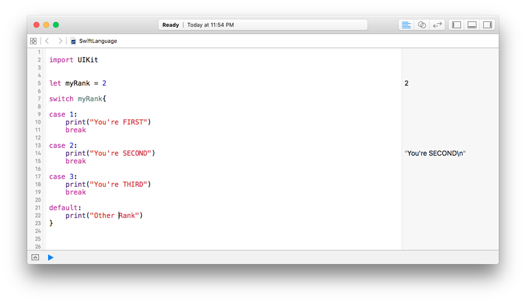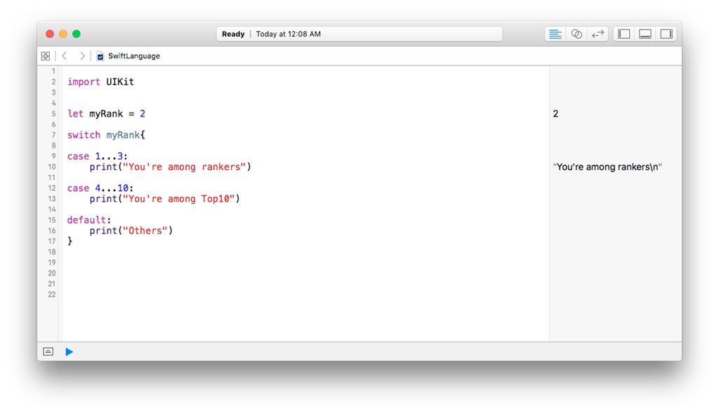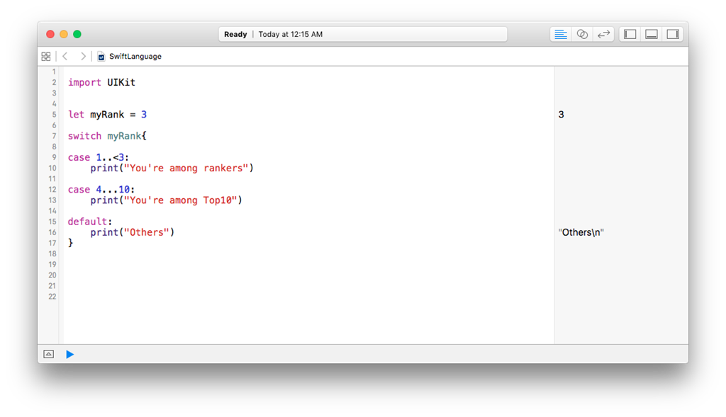 But, when we say 1..<3 which is equivalent to only 1 and 2, not 3. In this Exclusive Range operator, we are ignoring the upper bound limit.