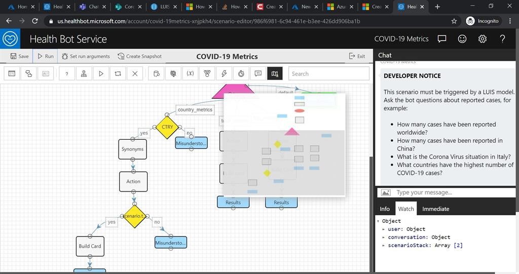 Hi guys, let's explore a way of creating a health care Covid-19 Metric BoT with LUIS using the Metric Template from Microsoft. It can be used to check corona-affected patient symptoms with employees of your organization.