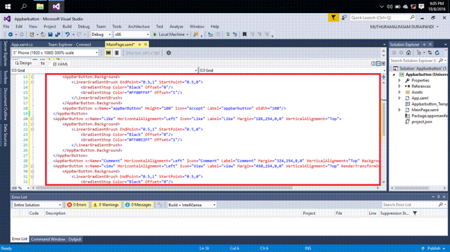 Now, we can go to XAML page, write the code and save the code. Follow the shortcut keys Ctrl+S.