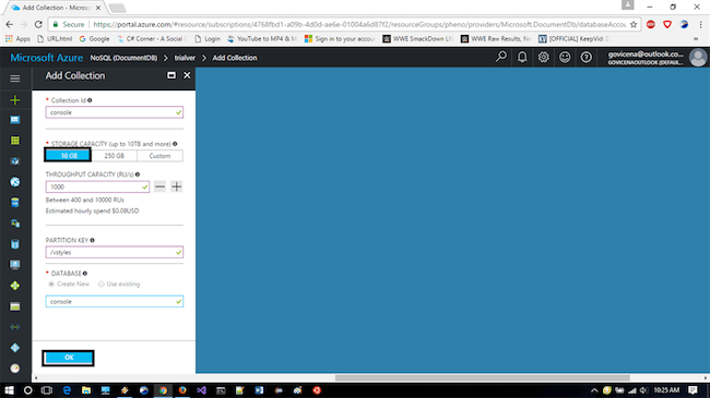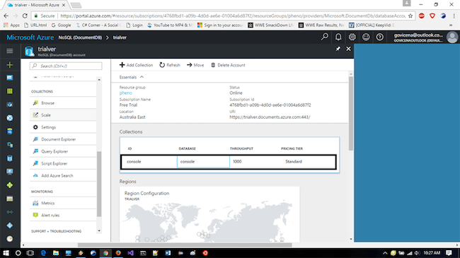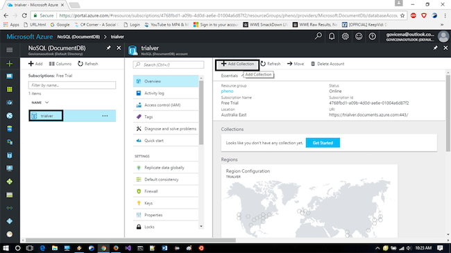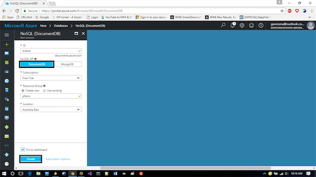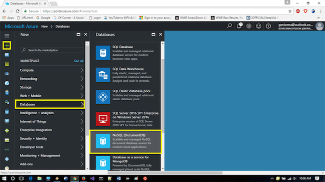 - Click Document DB NoSQL and from the Document DB NoSQL, select the account.