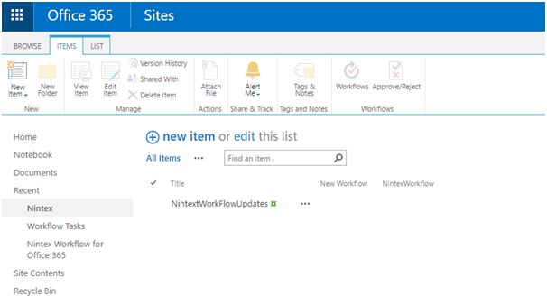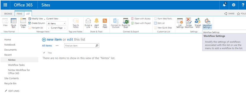 Once you've Finished the Settings go to the list and navigate to the below ribbon and select Nintex workflow.