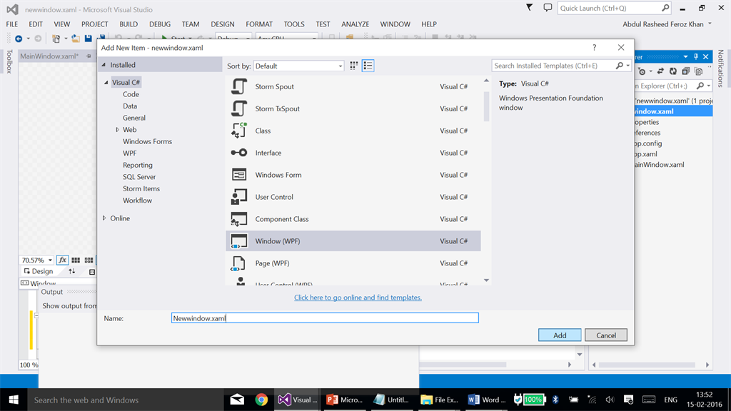 Step 3: Solution Name(Right Click) --> Add à New Window.
