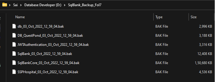 SET @path = 'D:\SqlBank_Backup_Fol7\' -- 1st Create Folder In