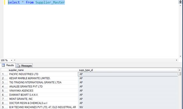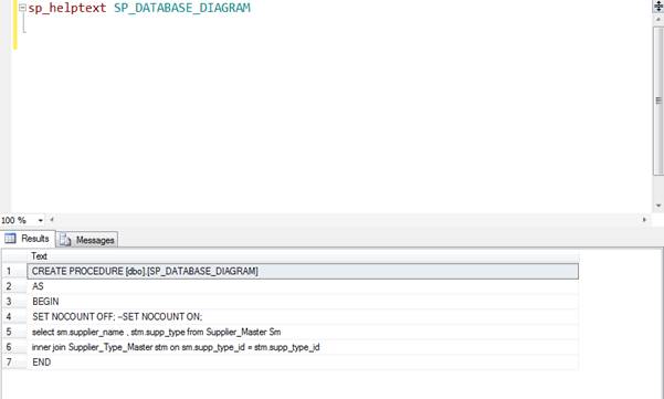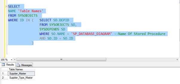 It will show two table names used in this stored procedure i.e. Supplier_Master & Supplier_Type_Master.