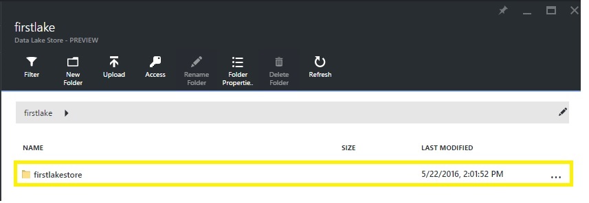 Step 2: Click the name of the Azure Data Lake Store that you want to create folder, In your Data Lake Store account blade, click Data Explorer.